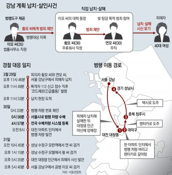 강남 한복판에서 벌어진 납치 및 살인 사건으로 언론이 매우 뜨거운데요, 도대체 어떤 형태로 이 사건이 발생되었는지 자세하게 알아보도록 합니다.