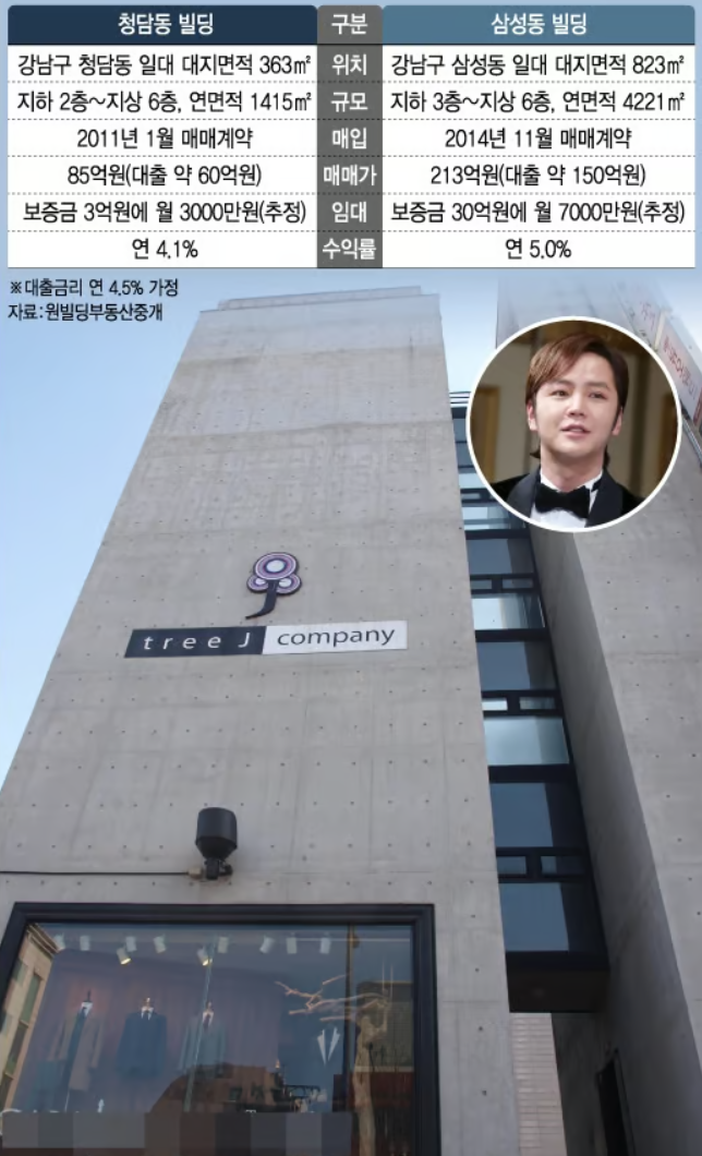드디어 대한민국 최고의 건물주 연예인 중 탑인 장근석에 대해 알아보겠습니다. 장근석은 2011년도 청담동의 6층짜리 건물을 85억 원에 매입한 뒤, 아직도 보유하고 있으며, 2014년에는 삼성동에 있는 6층짜리 건물을 213억 원에 매입하여 아직까지 보유하고 있습니다.