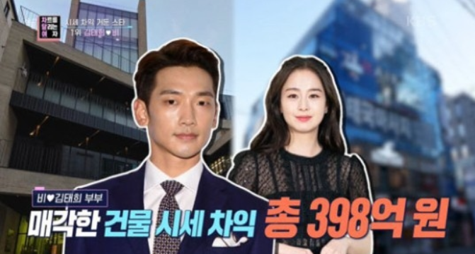 비는 과거 2008년 168억원에 매입한 청담동 건물을 495억 원에 매각하며, 327억 원의 차익을 낸 것으로 유명하며, 김태희 역시, 132억 원에 매입한 역삼동 건물을 203억 원에 매각하여, 71억 원의 차익을 본 부부로 잘 알려졌습니다. 또한, 미국 캘리포니아 어바인에도 타운하우스를 매입했으며, 2년 만에 13억 원이 오른 것으로 예상하고 있습니다.