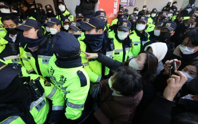 국가정보원(국정원)이 전국민주노동조합 총 연맹(민주노총)의 '간첩단 의혹 관련하여 민주노총 본부에 대한 압수수색을 시도 중입니다. 국정원과 경찰청은 1월 18일 오전 서울 중구 정동 민주노청 사무실에 수사관들을 보내 압수수색 영장 집행을 시도하고 있습니다.
