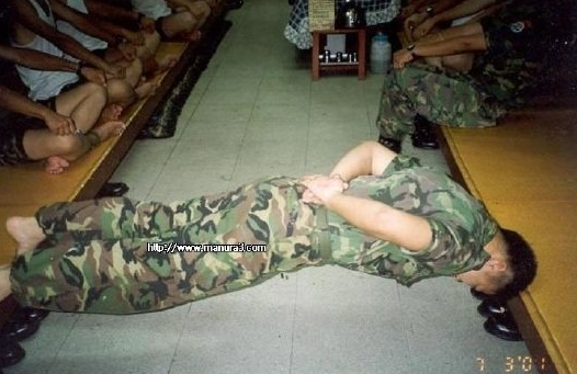 보기만해도 더러운 남자들의 땀 냄새가 진동하는 내무반의 모습이며, 대부분의 군인들이 무좀에 걸려서, 운동화에서 냄새가 심했던 기억이 있습니다. 또한, 군 선임들로부터 내려받은 하이바에서 나는 냄새와 수십 년 전부터 내려져온 수통을 이어받아 사용했던 기억도 나네요.