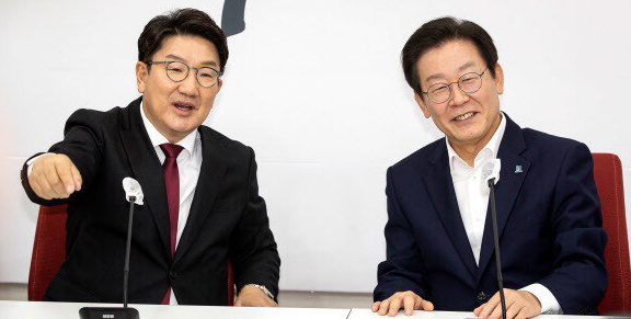 또한, 권성동 대표는 처음부터 어대명(어차피 당대표는 이재명)이란 말이 나올 정도로 압도적 승리를 거두셨다고 축하인사를 건네었으며, 이재명 대표는 '존경하는 권성동 원내대표 겸 직무대행님'이라고 화답하며, 처음부터 입에 미소가 띠며 서로를 맞이했습니다.