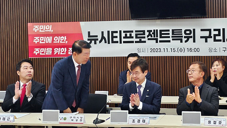 지난 2023년 11월 21일 일산동구청 대회의실에서 국민의 힘 뉴시티 프로젝트 특위 위원장인 조경태 의원을 초청하여 '뉴시티 프로젝트'에 대한 설명회를 개최했습니다. 최근 저출산으로 인해, 한국의 수도인 서울의 경쟁력이 약화되고 있는 가운데, 서울을 살리려는 '뉴시티 프로젝트'를 설명하였습니다.