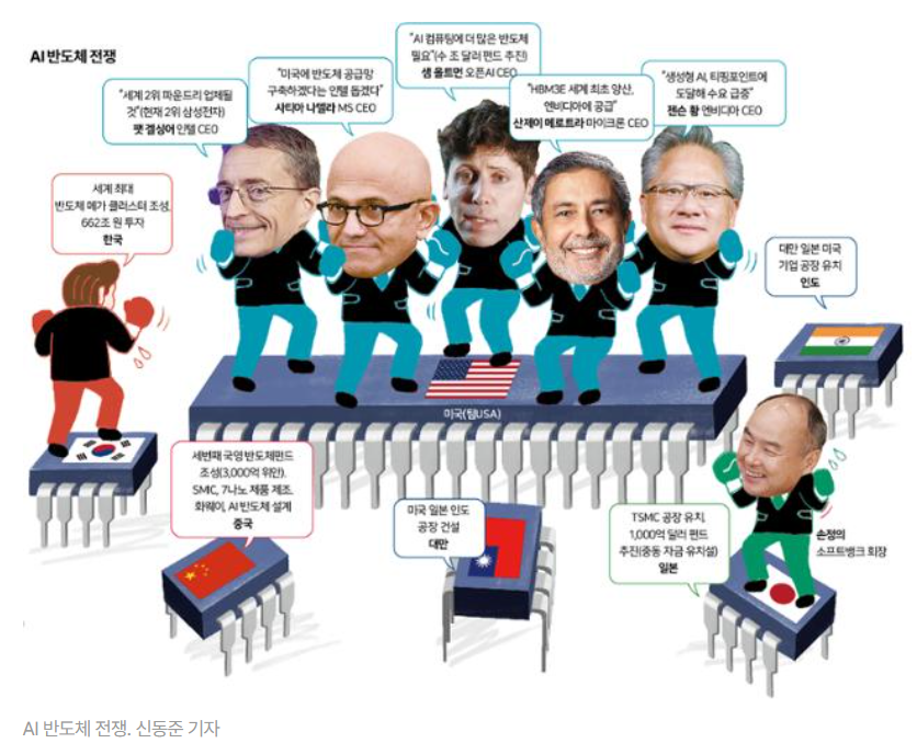 AI시대가 왔습니다. 즉, 인공지능의 시대가 온 것인데, 현재 전 세계 기업들은 AI에 필요한 AI반도체를 확보하기 위해 반도체 패권을 잡기 위해 싸우고 있습니다. 현재 주가의 고공행진을 달리고 있는 엔비디아를 비롯하여, 챗GPT를 론칭한 오픈 AI와 오픈 AI의 최대주주인 MS도 대항마입니다.