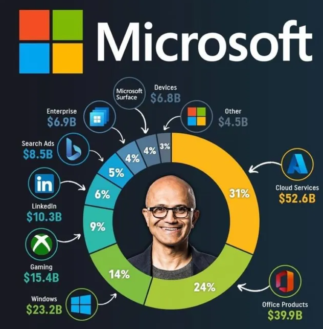 마이크로소프트는 1975년 빌게이츠와 폴 앨런이 창업한 회사이며, 빌게이츠와 폴 앨런은 고등학교 때부터 컴퓨터를 가지고 서로 자주 놀았으며, 서로 해킹을 하며 친해졌으며, 마이크로소프트도 1:1 지분을 가지고 투자를 하였습니다. 현재는 전세계 컴퓨터 점유율 93%를 지배하며 독점적 기업이며, 모든 컴퓨터에는 Microsoft Office를 사용하고 있습니다. 마소는 클라우드, 오피스, 윈도, 게임, 취업, 서칭 등 많은 영역에서 매출이 발생하고 있으며, 현재는 애플을 꺾고 전 세계 시총 1위에 오른 기업이 되었습니다. 현재 CEO는 사티아 나델라라는 인도계 미국인이 맡고 있으며, 현재 그가 받고 있는 연봉은 10억 달러가 넘는다고 알려져 있습니다. 즉, 1.3조 원의 연봉을 받고 있다는 것이죠.