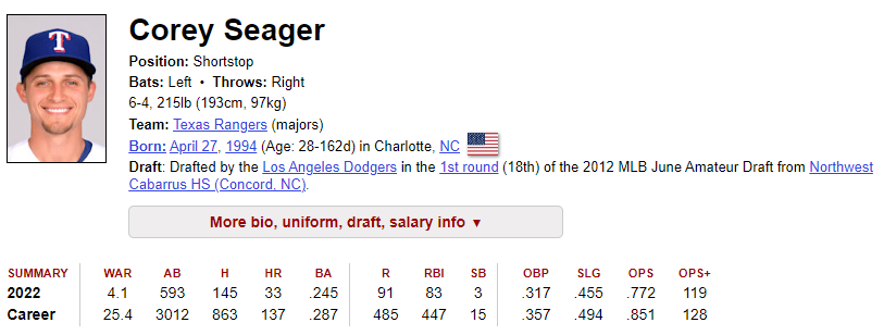 3) 올해 퍼포먼스 : 금년 타율 0.245, 홈런 33개, 타점 83개. OPS .772 로 홈런을 제외하면, 매우 실망스런 기록을 보였습니다. 하지만 아직 젊은 선수이니 내년에는 좋은 성적을 기대해봅니다.