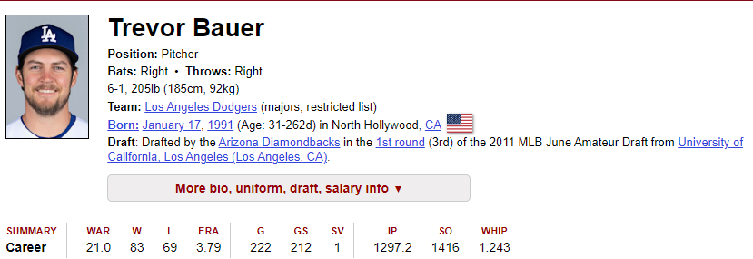 2) 연봉 : 3년 1억 200만달러에 LA 다저스와 계약을 맺으며, 연봉 $34M를 받게 되는 바우어
