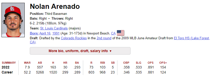 3) 올해 퍼포먼스 : 금년 타율 0.293, 홈런 30개, 타점 103개. OPS .891 로 매우 준수한 성적을 보이며, 세인트루이스 구단에 좋은 성적을 보여주긴 했습니다. 올시즌 후, FA에 나올 수 있는 아레나도는 향후 5년간 1억 4400만달러 이상의 FA계약을 얻기는 힘들 것 같은지, 세인트루이스에 머물기로 결정했다고 합니다.