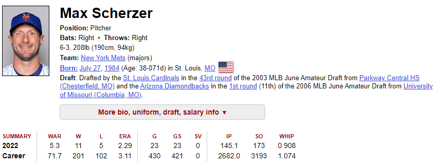 3) 올해 퍼포먼스 : 145.1이닝으로 적은 이닝을 던졌지만, 방어율은 2.29.. 정말 대단한 수치일 수 밖에 없네요.. 충분히 연봉값을 했다고 생각합니다. 95마일의 직구에 정확한 제구력까지... 아직까지도 녹슬지 않는 실력을 보여주고 있네요.