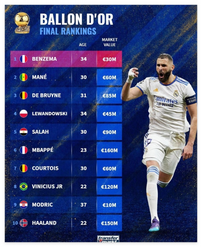 2022년 발롱도르 수상자는 프랑스의 카림 벤제마로 레알 마드리드 주장을 맡고 있습니다. 벤제마는 1997년부터 올랭피크 리옹에서 프로생활을 시작하였으며, 2009년부터 레알 마드리드에서 현재까지 활약하고 있습니다.