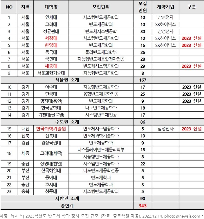 단국대, 명지대, 세종대, 아주대, 호서대 등 5개 대학도 반도체 관련 학과를 새로 개설하였습니다. 전국 4년제 대학에서 반도체 명칭이 들어간 학과는 총 28개로 모집 규모는 1393명으로, 수도권에는 총 13개 학과가 개설되어 있습니다.