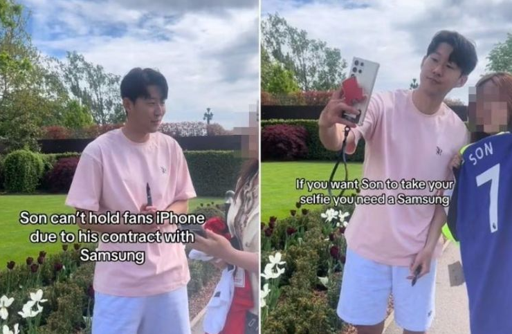 작년 2023년 삼성전자 갤럭시 브랜드 홍보대사로 활동중인 손흥민은 삼성과의 의리를 지키는 모습이 포착되어 화제인데요, 팬들이 셀카를 직접 찍어달라며 애플 아이폰을 들고 오자 정중하게 거절하는 모습입니다. 손흥민은 핸드폰 기종을 확인 인한 뒤, 양손을 모아 정중히 거절 의사를 표한 뒤, 여성팬은 잠시 당황하는 모습을 보이다가 이내 아이폰을 직접 자기 손으로 들고 손흥민의 사진을 찍었습니다. 한편 다른 여성팬이 갤럭시 핸드폰을 들고 오자, 직접 팬의 갤럭시를 들고 촬영 버튼을 누른 뒤에, 사진이 되게 가깝게 찍힌다고 언급하기도 했습니다. 이 사진에는 하루 만에 1600개가 넘는 댓글이 달렸으며, 손흥민의 프로 정신에 감동을 받았고, 손흥민이 삼성과의 의리를 지켰고, 프로 정신이 남다르다, 팬에게 정중히 양해를 구하는 모습도 호감이다라는 반응이 나왔습니다.