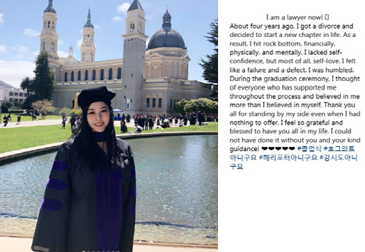 2014년 이혼 후, 서동주는 샌프란시스코대학 로스쿨에 입학하여 2018년도에 졸업하였으며, 2019년부터 미국에서 변호사 생활을 하게 됩니다. 서동주는 로스쿨에 다닐 때는 일 끝나고 집에 와서, 공부만 죽도록 하고, 주말에도 하루에 12시간 이상 공부만 하니 우울해서 죽을 것 같았다고 밝힌 바 있습니다. 이런 노력 끝에, 서동주는 변호사 시험에 합격하게 되었으며, 포기하지 않은 자신이 너무 자랑스럽다고 인터뷰한 적이 있습니다.