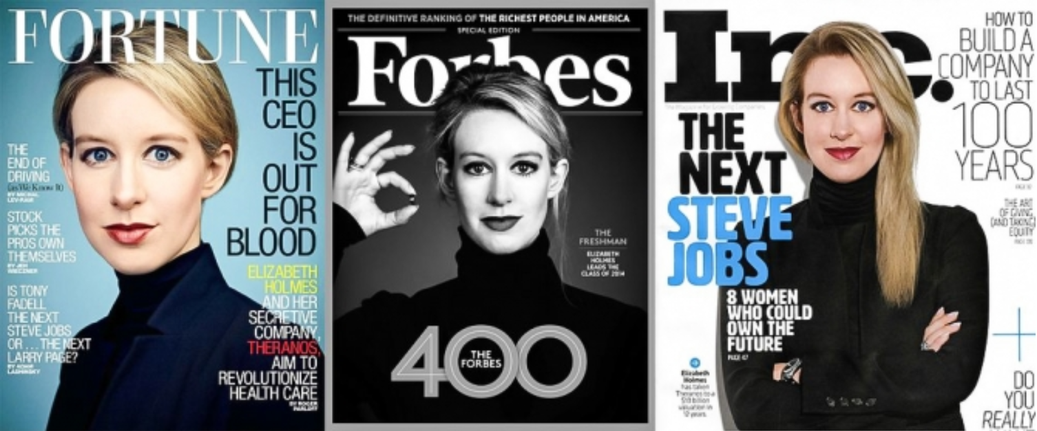 홈즈는 기업 설명회나 언론에 나갈 때에는 스티브 잡스를 연상케하는 검은색 터틀넥을 자주 입고 나왔으며, 그녀의 실력보다는 이미지 메이킹에 포커스를 맞추는데 급급하기도 하였습니다. 하지만, 언론 인터뷰에서 답변하는 홈즈의 의학 수준과 테라노스 직원들의 솔직한 인터뷰 등을 토대로, 테라노스의 실체는 조금씩 밝혀지기 시작하였으며, 몇몇의 의학 전문가들의 의심을 통해서도 테라노스의 문제점이 붉어졌으나, 테라노스 이사회의 압박으로 인해 언론에서도 힘을 발휘하기가 쉽지 않았습니다.