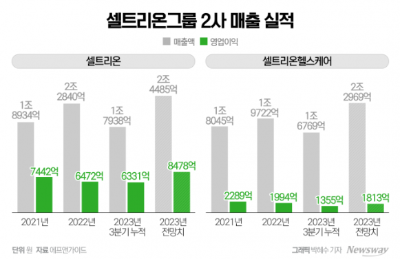 셀트리온의 2023년도 연매출은 약 2조4485억이며, 전년대비 약 7% 정도 상승할 것으로 예측되며, 영업이익은 8478억 원을 예상하고 있습니다. 또한, 최근 셀트리온의 바이오시밀러 파이프라인들이 주요 국가에서 허가를 받거나, 허가준비에 나서면서, 셀트리온의 미래는 아주 밝다고 할 수 있습니다.