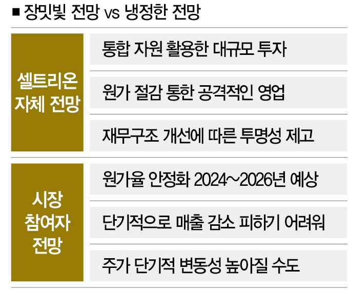 셀트리온에게 이번 합병은 수년간 셀트리온 그룹을 괴롭혀왔던 높은 비중의 '내부자거래' 문제를 완벽하게 해소하는 계기가 될 것이며, 셀트리온 그룹은 국내외 계열사 내부거래 비중은 62.5%로 공시대상기업집단 가운데 가장 높은 수치를 기록하였습니다. 셀트리온헬스케어는 셀트리온이 개발하여 생산한 바이어시밀러를 해외에 판매하는 사업을 하고 있기 때문에, 내부거래 비중이 높은 것입니다. 또한, 서정진 회장은 영업이익이 3조가 되면, 1조원은1조 원은 R&D에 투자할 것이며, 나머지 1조는 현금보유, 그리고 1조 원은 주주들에게 배당할 것이라고 말하기도 했습니다.