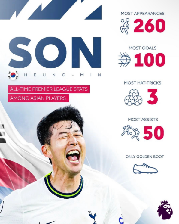 손흥민의 이번 100호 골은 EPL 출전 260 경기만에 거둔 골이었으며, 그중 3경기는 헤트트릭으로 만들어내었으며, 정확히 50 어시스트를 기록하고 있습니다.
