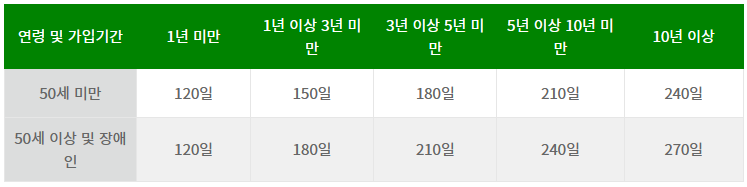 1년 미만자의 경우는 연령과 상관없이 실업급여가 120일(4개월)만 지원되며, 1년 이상일 경우부터 10년 이상까지 소정급여일수가 늘어나게 됩니다. 하단에 '실업급여 금액 미리 계산해볼 수 있는 링크'를 걸어두었으니, 관련 사이트로 이동하면 실업급여 모의 계산이 가능해집니다.