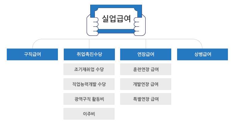 실업급여란 고용보험 가입 근로자가 실직하여 재취업 활동을 하는 기간에 소정의 급여를 지급함으로써, 실업으로 인한 생계불안을 극복하고 생활의 안정을 도와주며, 재취업의 기회를 지원해주는 제도로서 실업급여는 크게 구직급여와 취업촉진수당으로 나뉩니다.