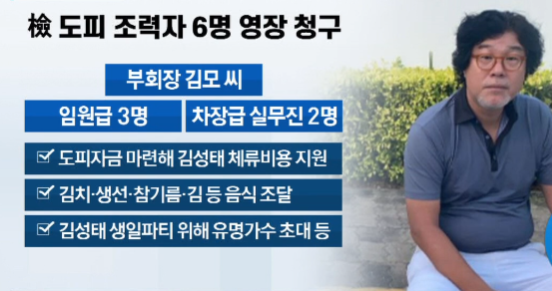 검찰은 김성태뿐만 아니라, 김성태의 도피를 도움 임원급 3명과 차장급 실무진 2명에게 영장을 청구하였으며, 그들은 도피자금을 마련하여 김성태 체류비용을 지원해 주었으며, 김치 생선 참기름 김 등의 음식을 조달하였으며, 김성태 생일파티를 위해 유명가수를 초대하는 등 현지에서 도망자 신세인 김성태를 위해 호화로운 생활을 하게끔 도운 행위를 했습니다.