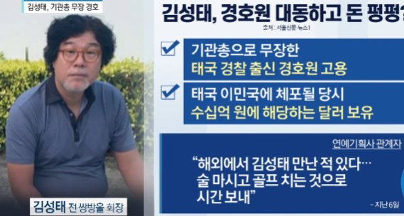 김성태는 기관총으로 무장한 태국 경찰 출신 경호원을 고용하였으며, 태국 이민국에 체포될 당시, 수십억원에 해당하는 달러를 보유했다고 밝혀졌습니다. 또한, 지난 6일 연예기획사 관계자는 해외에서 김성태를 만나적이 있으며, 술 마시고 골프 치는 것으로 시간을 보내고 있다고 밝히기도 했습니다.