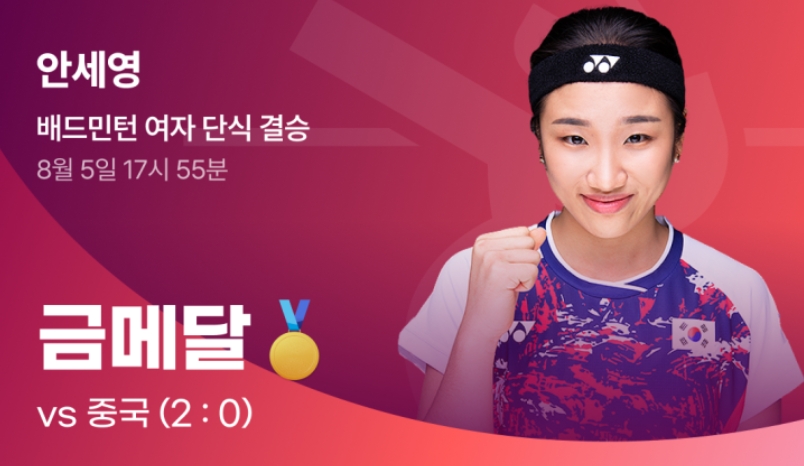 대한민국 배드민턴 여자 단식 세계랭킹 1위를 기록하고 있던 안세영은 8강과 4강에서 2대1로 힘겹게 올라왔지만, 결승에서 중국 선수를 2대 0으로 가볍게 제치고 금메달을 목에 걸었습니다. 상대보다 더 뛰고, 강한 체력과 수비력을 바탕으로 상대의 범실을 자주 유도하는 안세영은 결승전에서도 매우 영리한 플레이로 상대를 제압하여 금메달을 따게 되었습니다.