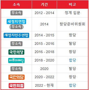 안철수는 무소속으로 정계에 입문한 뒤, 2014년 새정치민주연합당을 창당했으며, 그 후에도 국민의 당, 바른미래당, 무소속, 국민의당, 국민의 힘까지 여러 당에서 정치인생을 이어간 후, 금일 국민의 힘 당대표를 선언하였습니다.