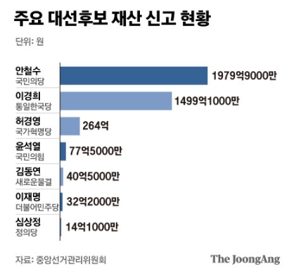 안철수 후보의 재산은 약 2000억원으로 재산을 신고하였습니다.
