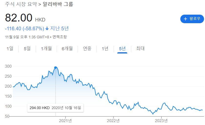 마윈이 중국 금융당국을 비판하기 전의 알리바바의 주가는 약 $300까지 치솟았으나, 현재는 $82까지 폭락하여 거의 2년간 바닥을 기고 있는 상태입니다. 2020년 10월 24일 금융서밋 연설 이후, 2021년 1월까지도 마윈의 종적이 묘연했으며, 야후파이낸스에서는 마윈의 실종설을 제기하기도 했을정도였으며, 2021년 2월 지역 교사들을 위한 강연을 통해, 3개월 만에 공개석상에 화상으로만 등장하였습니다. 그 이후, 2022년도 마윈은 앤트그룹 지분을 포기하고, 일본에 한동안 머물렀으며, 2023년에 조용히 중국으로 다시 돌아왔으며, 4월에 홍콩대 명예교수로 임명되었습니다. 앞으로는 일본 도쿄대에서 기업 경영 혁신에 대해 강의를 이어나갈 예정입니다. 2023년 10월 기준 마윈의 재산은 약 31조 원으로 중국 부자순위 10위에 올라와있습니다. 중국 부호 1위는 생수 업체 '눙푸산취 안'의 창업자 중산산이며, 그의 재산은 약 83조 원으로 알려져 있습니다.