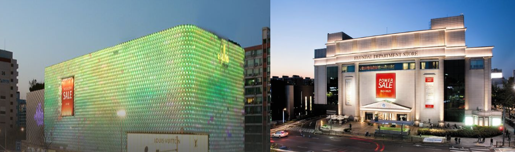 압구정 현대아파트 주위에는 갤러리아 명품관 본점과 현대백화점 본점이 위치해 있습니다. 현대아파트에는 대부분이 고소득층 계층이 주로 살고 있다 보니, 명품관 및 VIP들이 많기 때문에 백화점 본점이 유지되고 있습니다. 특히, 현대백화점 본점의 경우는 압구정역 바로 앞에 있으며, 갤러리아 백화점은 압구정로데오역 바로 앞에 위치하여 있습니다.