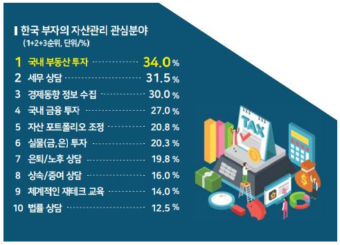 금융자산을 10억 원 이상 보유한 부자 10명 중 8명은 비트코인이나 NFT와 같은 디지털 자산 투자경험이 없는 것으로 나타났으며, 1년간 단기 투자로 '예적금'을 늘리겠다는 응답이 29%로 가장 많았습니다. 3년간 중장기 투자처로는 거주용 외 부동산이 43%로 가장 많았으며, 거주용 부동산 39.5%, 빌딩과 상가 투자가 38%, 주식은 31%에 그쳤습니다. 또한, 부자가 최소 종잣돈을 모은 시기는 평균 42세였습니다.