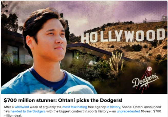 LA다저스는 오타니 쇼헤이를 위해, 그동안 선수단 연봉 총액을 조절하며 오타니를 위한 사전준비를 진행해 왔습니다. 또한, 많은 전문가들은 LA다저스만이 오타니를 영입할 수 있는 구단이라고 예상을 했으며, 이는 사실로 드러났으며, 오타니는 결국 10년 7억 달러에 계약을 하고 말았습니다.