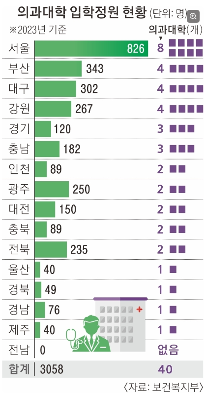 현재, 서울에는 의대를 가지고 있는 대학교가 총 8개이며, 입학정원은 826명이며, 부산에는 4개대학으로 정원이 343명, 대구가 320명 등 전국적으로 의대 정원은 총 40대 대학, 3058명입니다. 이제, 내년인 2025년에는 의대가 증원되는데요, 1487명~ 1509명까지 늘어나게 됩니다. 약 1.5배 정도 늘어난 수치인데요, 생각보다는 많이 늘어난 수치입니다.
