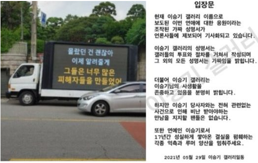 2021년에는 이승기 팬클럽에서 이승기와 사귀고 있는 이다인과의 결별을 요청하는 트럭팻말을 준비하며, 이승기가 매입한 주택 앞에서 트럭시위를 한 적도 있습니다. 2023년 4월 7일 결혼식 후, 이승기와 이다인이 신혼집으로 선택할 곳은 과연 삼성동일까요 아니면 성북동일까요? 그리고, 견미리는 이유비와 단 둘이 대저택에서 계속 살 건지도 궁금해집니다.
