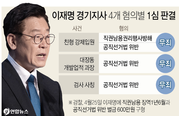 한편 이재명 대표는 공직선거법 위반 혐의에 대해서도 징역 1년, 집행유예 2년을 선고받았으며, 이재명 대표는 판결에 불복, 항소장을 제출했으며, 검사도 항소를 하였습니다.