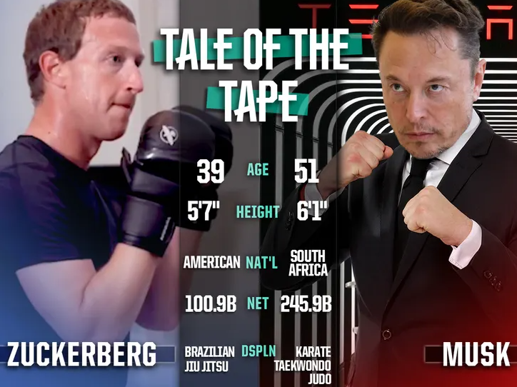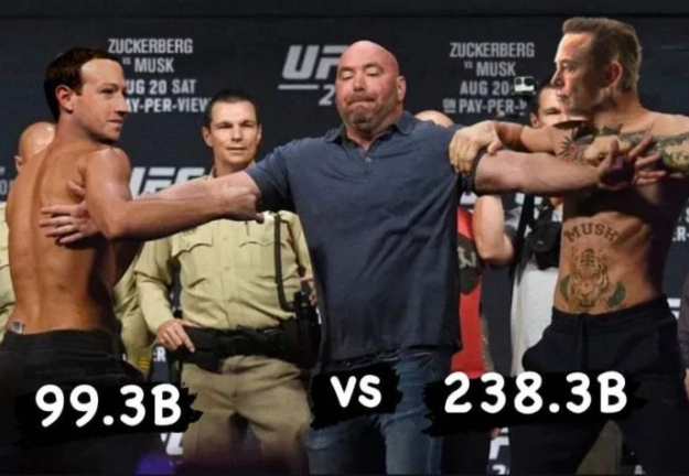 일론 머스크는 51세의 나이에, 언론에 어떤 운동을 하는 것을 공개한 적이 없는 기업인이나, 본인은 어렸을 때 가라데, 태권도, 유도를 했다고 언급한 적은 있었습니다. 하지만, 잠깐 배운 것으로 지금 현재 그 실력을 발휘할 수는 없을 것입니다. 하지만, 마크 주커버그의 경우는 다릅니다. 마크 저커버그는 39세의 나이에 이미 종합격투기 MMA를 배우고 있으며, 최근 주짓수 경기에서 우승을 차지하였으며, 본인의 소셜미디어에 격투기 영상과 사진 등을 자주 올리는 등, MMA에 진심을 가지고 있는 기업인입니다.