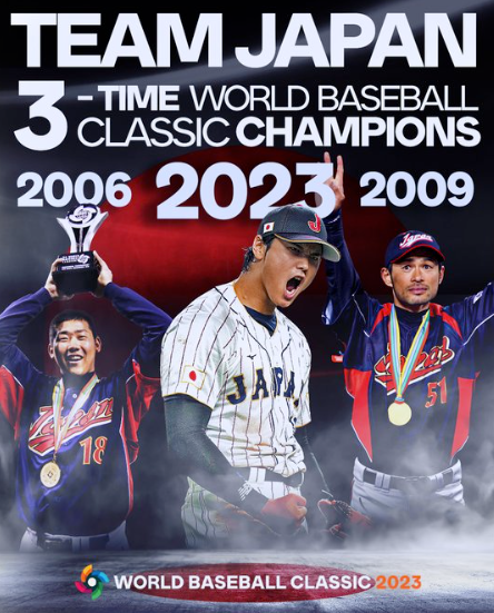 일본이 2006년과 2009년에 이어, 2023년 WBC에서도 우승을 차지하며, 세계 야구 랭킹 1위를 유지했습니다. 이로서, 월드 베이스볼 클래식 5번의 대회에서 3번의 우승을 차지하며, 일본은 전 세계 야구팬들에게 세계 최강임을 증명했습니다. 미국은 야구 종주국으로서 자존심을 잃게 되었으며, 다음 대회에서는 좀 더 A급 투수들이 출전해야 되지 않을까 싶습니다.