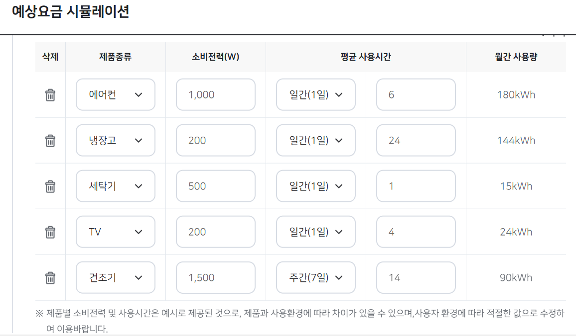 - 월별 전기 사용량을 체크하면 과소비 시점을 파악할 수 있습니다.