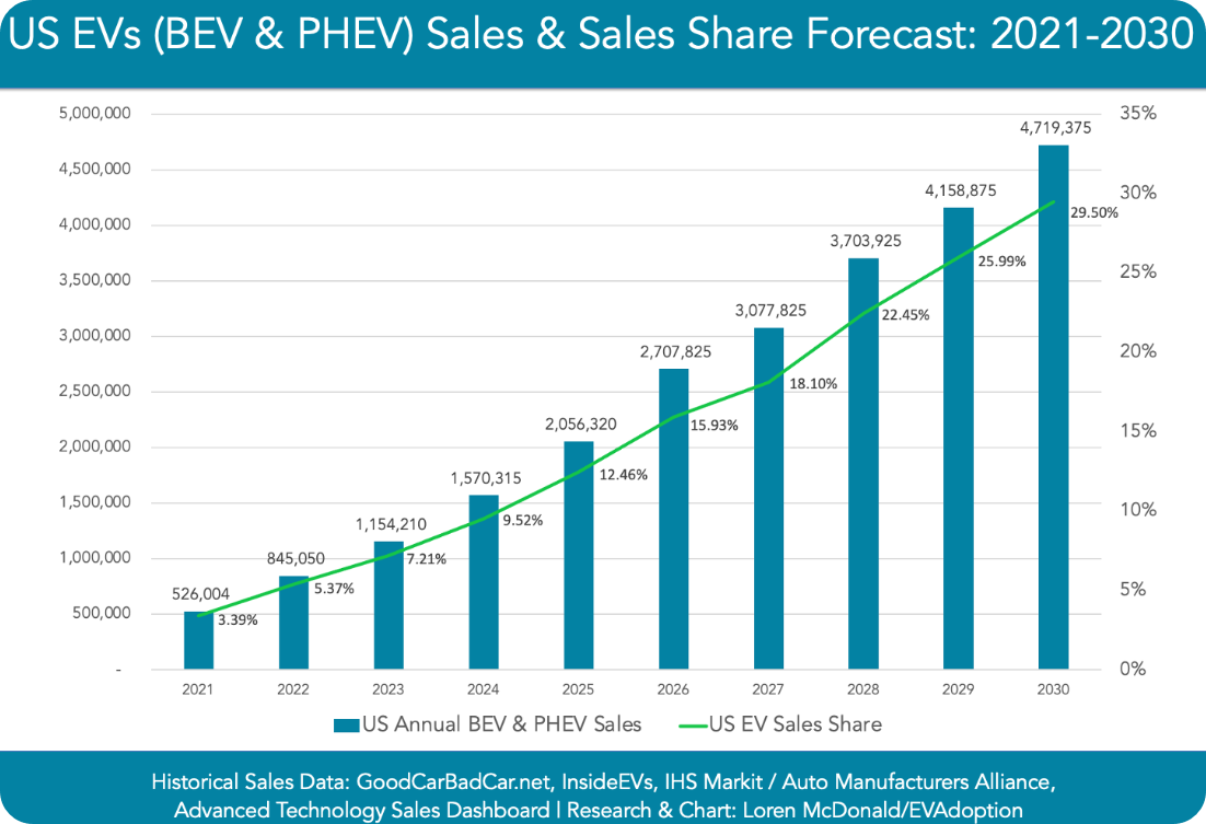 2030년까지 무려 약 550% 상승을 예상하고 있습니다. 따라서, 미국 시장을 기준으로 2025년까지는 전기차 전용 자동차 회사인 테슬라, 리비안, 루시드 등이 전기차 시장을 주도할 것이며, 2025년까지 휘발유, 경유차량에서 전기차로의 전환을 하지 못하는 회사들은 앞서 말한 대로 역사 속에서 사라지게 될 것입니다. 한국도 2030년까지 전기차를 330만 대 생산하여, 점유율을 12%까지 끌어올린다고 발표했죠.