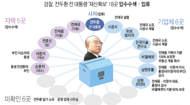 검찰은 지금까지 채권, 연희동 사저, 한남동 부동산 및 이태원동 빌라 등 총 1248억 원에 대한 재산을 압류했으며, 미집행액은 약 956억 원이나, 전두환 측은 연희동 자택만은 못 내놓겠다고 주장하였으며, 현재 법원에서 서울 연희동 본채와 정원에 대한 압류는 결국 최소결정이 났으며, 별채에 대한 추징 가능성이 커진 상태였으나, 전두환 대통령 사망 이후에도 추징할 방법을 찾고 있습니다.