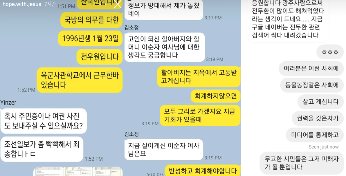 진실을 밝히는 것을 위해, 용기를 내어 폭로한 전우원 씨를 응원하며, 테러를 당하거나 정신병원에 갇히는 일이 없었으면 합니다. 또한, 전두환의 가족들과 지인들이 불법자금 행위와 마약, 탈세 등 범죄혐의를 다시 한번 검찰이 재조사를 하여, 전재용 씨와 박상아 씨를 한국에 불러들여 철저한 조사를 해야만 합니다. 고 전두환 대통령은 영웅이 아니라 학살자이자 범죄자라고 소신을 다해 밝혀준 전우원씨에게 박수를 보냅니다.