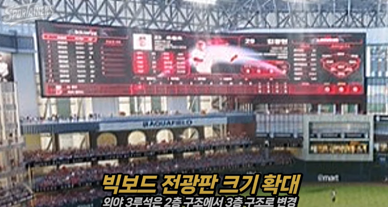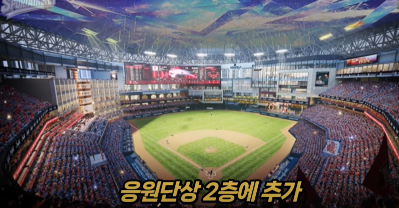 또한, 응원단상을 2층에 추가하기로 하였으며, 빅보도 전광판의 크기도 확대하여, 한국 프로야구장중에서 가장 큰 규모의 전광판을 보유하게 될 예정이며, 천장의 디스플레이도 멋지게 만들 예정이라고 하네요.