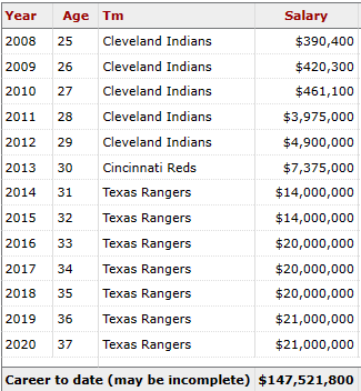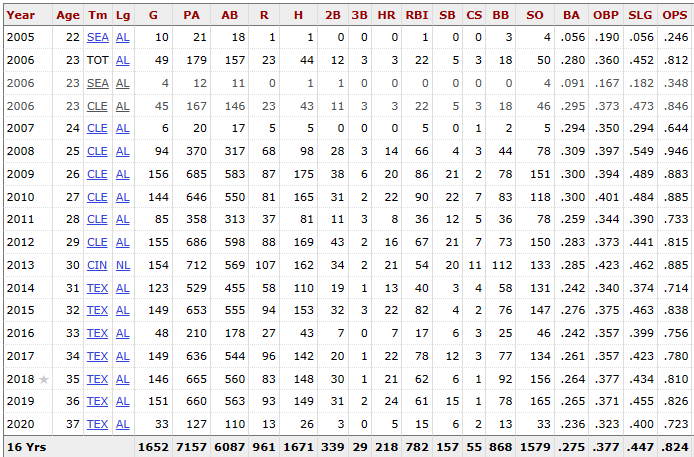 이후, 2013년에는 신시내티로 트레이드되어, 타율. 285, 홈런 21개, 볼넷 112개와 출루율. 423으로 MVP 순위에서 12위 오르며, 텍사스와 7년 1억 3000만 달러에 계약하며 대박을 치게 됩니다. 그 후, 텍사스에서 7년간 홈런 114개, 355 타점, 타율. 258, 출루율. 362를 기록하며 메이저리그 생활을 마친 후 한국 프로야구 SSG랜더스에서 커리어를 이어가게 됩니다.