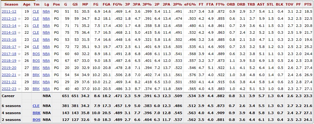 카이리 어빙은 19살에 NBA에 데뷔하여, 12 시즌째 NBA에서 뛰고 있으며, 현재도 최정상급 가드로서 플레이하고 있는 선수이나, 워낙 기행적인 행보를 보이며, 팀워크에서는 최악인 선수로서, 보스턴 시절 최악의 리더십을 갖춘 선수로 어빙이 뽑히면서, 브루클린 네츠로 트레이드되기도 했습니다.