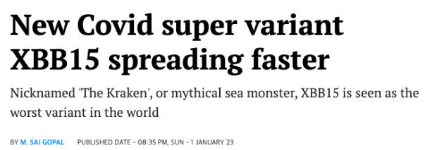 유전학자들은 이 변종을 '크라켄'이라고 부르기 시작했으며, 노르웨이의 신화에 등장하는 무시무시한 바다 괴물이라는 의미를 가지고 있다고 합니다. 미국 질병청에서는 XBB 1.5 감염에 의한 발병률이 지난 일주일 이전 대비 2배 이상 증가했다고 밝혔으며, 오미크론의 하위변위인 XBB는 2022년 8월 인도에서 처음 발견된 뒤, 싱가포르로 퍼지게 되었으며, XBB1, XBB 1.5 등 하위변위로 빠르게 확산되고 있습니다.