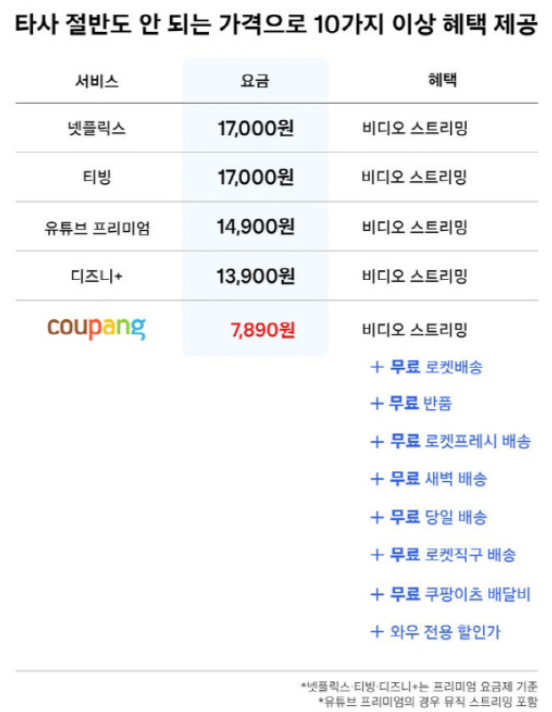 현재 쿠팡은 넷플릭스, 티빙, 유튜브, 디즈니+와 비교하면서, 쿠팡의 멤버십 요금은 타사 대비 많이 저렴하다는 것을 강조하고 있습니다. 최근 중국의 유통 공룡인 알리바바가 알리익스프레스를 통해 국내시장에 1.5조 원을 투자하겠다고 밝히자, 쿠팡은 그 2배인 3조 원을 투자하겠다며 맞불을 놓았습니다. 알리익스프레스가 초저가 방식으로 유통마진을 사실상 포기하는 상황에서 쿠팡의 멤버십 요금은 비싸다는 인식을 심어줄 수 있는데, 알리익스프레스의 전략을 쿠팡이 어떻게 막을 수 있을지 지켜보는 것도 재밌을 것 같습니다.