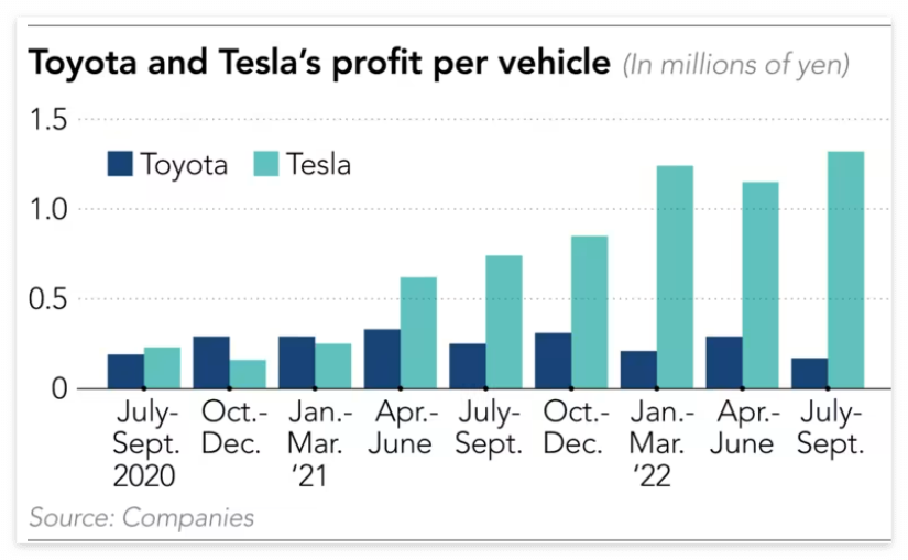 그럼, 테슬라와 도요타의 대당 영업이익을 비교해보겠습니다.