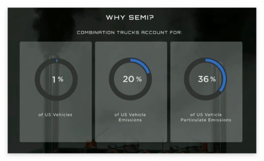 미국에서 세미 트럭이 차지하고 있는 비중은 약 1%에 불과하지만, 미국 자동차가 만드는 오염의 20%를 디젤 세미 트럭이 분출하고 있으며, 미국 자동차의 미세먼지의 36%를 디젤 세미 트럭이 만들고 있습니다.