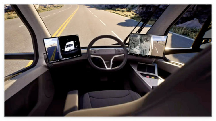 운전석 또한, 기존의 트럭 좌석처럼 운전석과 보조석이 있는 것이 아닌, 보조석 없이 운전석 하나로만 디자인하였으며, 15인치 디스플레이 2대를 양 사이드에 배치하였습니다. 가장 중요한 테슬라 세미 트럭의 가격은 이날 공개가 되지 않았으며, 기존에 공개하였던 15만 달러(약 2억 원)와 18만 달러(약 2억 4천)보다는 높게 책정이 될 것 같습니다.