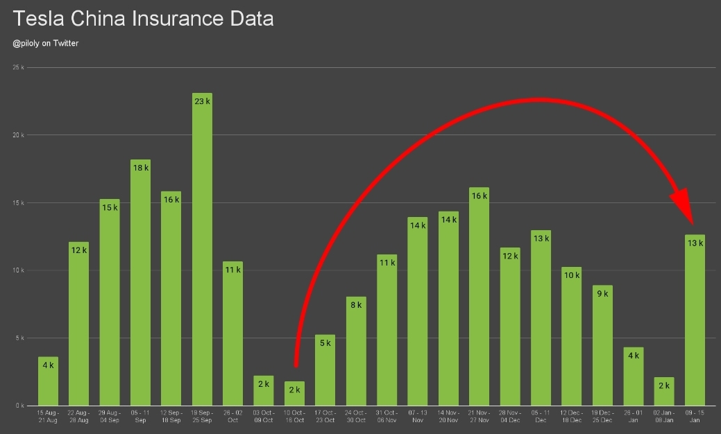 또한, 중국에서의 테슬라 보험 데이터를 보게 되면, 1월 15일 현재, 테슬라는 엄청난 주문을 받고 있으며, 1월말까지 테슬라 전기차량의 주문은 급증할 것으로 예상되며, 중국의 BYD의 사전예약지수는 급락하고 있습니다. 이 때문에, 중국의 전기차 업체들의 주가가 급락하고 있습니다.
